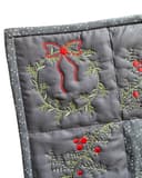 This cozy Christmas Village will have you wishing for snow! The village is created using both the stitch and-flip technique and applique. These blocks are bursting with details from the stained-glass windows in the church, the garland in the window boxes and the Village Bookstore's window decorations. The border is the perfect finishing touch with elegant, embroidered garland.