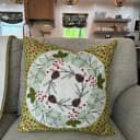 Put it out for Christmas, and keep it out for the winter season. The Holly is applique, the rest of the greens are beautifully embroidered.