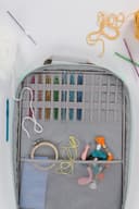 Store Clear Blue Tiles®, Orange PopRulers®, USB drives, and more in the Kimberbell ToolTote! Our designer bag effectively holds your favoriteKimberbell tools, with 26 elastic slots for flash drives and expandable pockets for Orange Pop Rulers. A variety of clear vinyl pockets are perfectly sized for Clear Blue Tiles. Organize tiles by height, close the pockets, and zip with a beautiful gold zipper to keep everything safely contained! With a quilted exterior, sturdy handles, and a shoulder strap pad for premium comfort, the Kimberbell Tool Tote is your chic on-the-go storage solution!