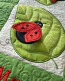 Ladybug Wall Hanging, this adorable three block wall-hanging features 3D ladybugs resting on leaves, some just landing and some that have been resting for a bit. The 3D wings add to the cuteness of this design.