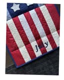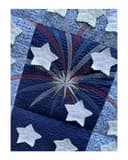 Stars and Stripes are featured in this three block wall-hanging with border. Fireworks are exploding in the top block while 3D stars are featured on the top 2/3 of the quilt. Red and white strips are featured at the bottom of the wall hanging.